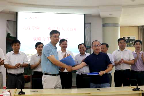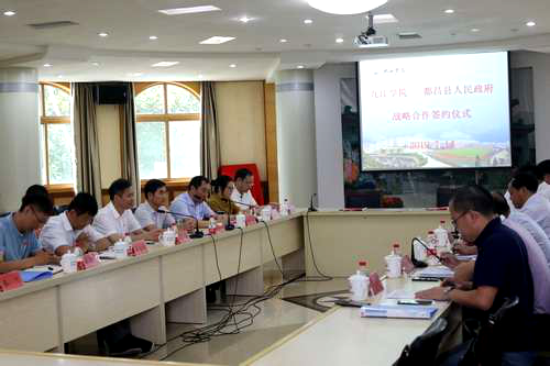 魏立平强调,我校始终扎根九江大地,以服务地方经济社会发展为己任。近年来,学校突出特色化办学和内涵式发展,主动对接长江经济带、国家生态文明试验区、鄱阳湖生态经济区等重大战略,跨学科整合人才资源,“政产学研用”一体谋划,积极服务区域经济社会发展;都昌地理环境优越,物产资源丰富,文化底蕴深厚,尤其是都昌人民的吃苦耐劳、淳朴厚道,尊师重教,令人印象深刻,在县委县政府的坚强领导下,都昌积极融入鄱阳湖生态经济区建设,发展成就令人瞩目,发展前景十分美好。