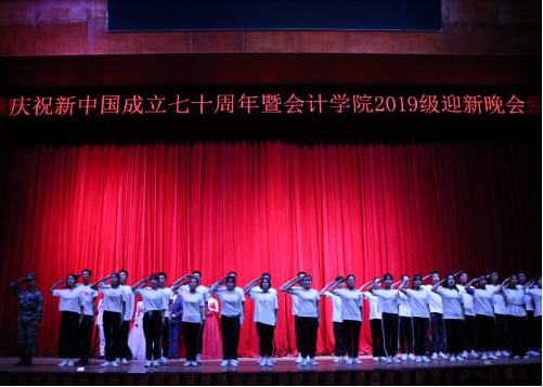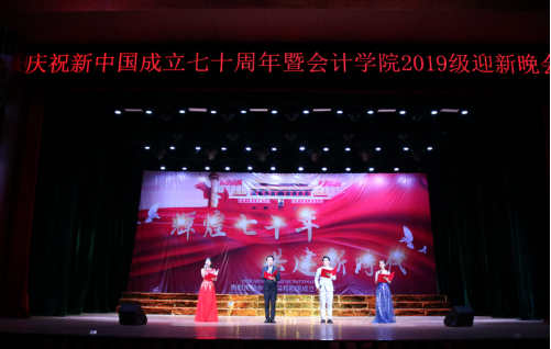 为庆祝新中国成立七十周年,进一步加强学生爱国主义教育。 9月27日晚,会计学院2019级“辉煌七十年,建功新时代”主题迎新晚会在主校区大礼堂成功举行。