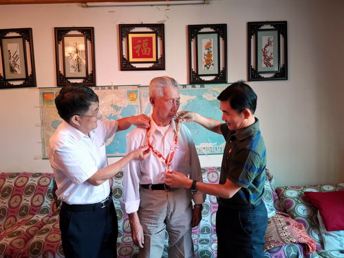 86岁的戴鹤年老人,依然精神矍铄。他激动地对前来看望他的学校工作人员说:“新中国成立70周年之际,党中央、习主席和学校还记得我们,十分感谢!我要养好身体,争取多为学校的建设发展发挥余热,留一份热,发一份光!”