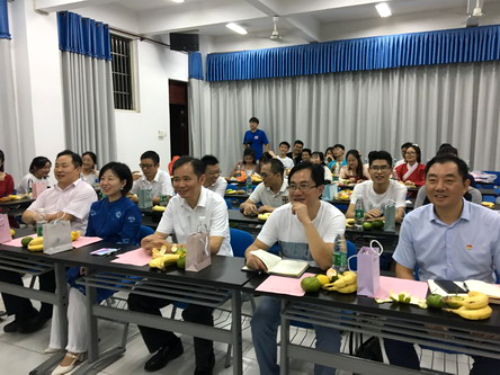 9月12日19:00,文学与传媒学院汉语言文学专业A1822班“喜迎七十周年庆·月圆中秋一家亲”主题班级联欢活动在文友楼204教室举行。 党委书记赵伟作为班级联系校领导,应邀参加活动。校党办主任杨杰、文传学院党政负责同志陪同参加。A1822班班主任邹经博士、任课教师代表柯镇昌博士、何春根博士及51名同学共同参加。