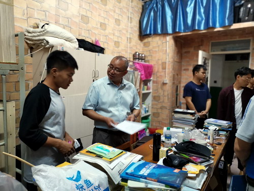 陈小林随机走访了23栋、25栋、35栋学生宿舍值班室,向正在值班的教师、宿管人员表示慰问,向参与安全值勤的学生干部表示感谢。陈小林认真查看了各楼栋的宣传教育栏、消防设备、安全设施、电子监控以及宿管值班室的线路改造等情况,要求相关部门要规范制度上墙及消息张贴、维护好各类安全设施,并着重强调了学生宿舍的安全管理和应急处置等事项。