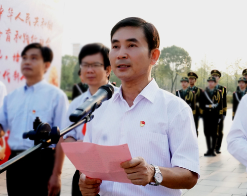 10月1日早上七点,美丽的校园在晨光的映照下熠熠生辉, 千名师生齐聚升旗广场,举行“我和我的祖国”升旗仪式,为新中国70华诞庆生,向祖国母亲深情告白。校党委书记赵伟、校长刘晓东在九江市参加升旗仪式。校党委副书记魏立平,副校长纪岗昌、王万山、陈春生、杨耀防、夏启国、查振华,纪委书记李广欣,副校长陈小林 ,党委委员王殿元、冯健、刘遵海与我校正处级领导干部、学生辅导员代表、以及一千余名青年学子共同参与了“我和我的祖国”升旗仪式。升旗仪式由团委书记闫来英主持。