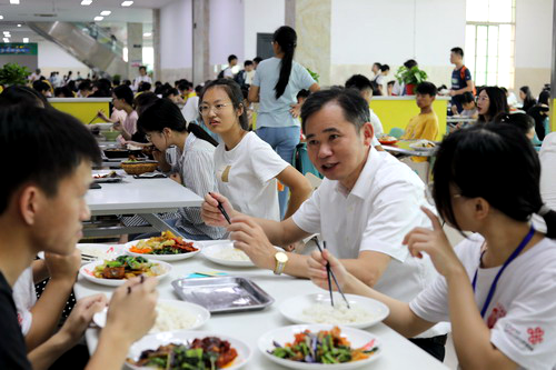 9月6日中午,校党委书记赵伟来到学生三食堂,与所联系班级文传学院A1822班的同学共进午餐。