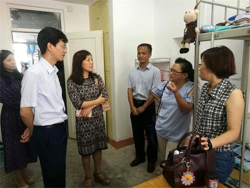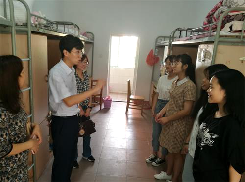 9月4日上午,副校长查振华在外国语学院院长韩琨、党委书记罗其娟、副书记彭晓等同志的陪同下深入外国语学院学生宿舍看望新生。