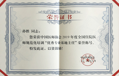 喜讯:临床医学院/附属医院医师荣获2019年度国家住院医师规范化培训“优秀专业基地主任”荣誉称号