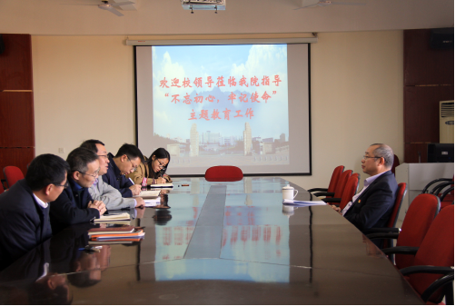 11月19日下午,校党委委员、副校长王万山深入经济与管理学院指导“不忘初心、牢记使命”主题教育工作,经管学院全体班子成员和教工第一党支部党员参加了工作汇报会。