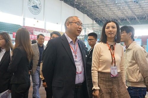 处负责人和各二级学院负责人的陪同下到现场视察指导。与用人单位招聘负责人和毕业生进行亲切交流,并就用人单位的人才需求、校企人才培养对接等方面交换了意见。