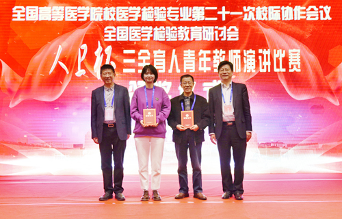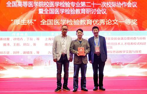 会议同时举办了“人卫杯三全育人青年教师演讲比赛”、“厚生杯全国医学检验教育优秀论文奖评审”,并举行了颁奖仪式。我校临床医学院/附属医院青年教师段训新、谢福生分别荣获“人卫杯三全育人青年教师演讲比赛”二等奖,胡志坚教授等荣获“厚生杯全国医学检验教育优秀论文奖”一等奖。