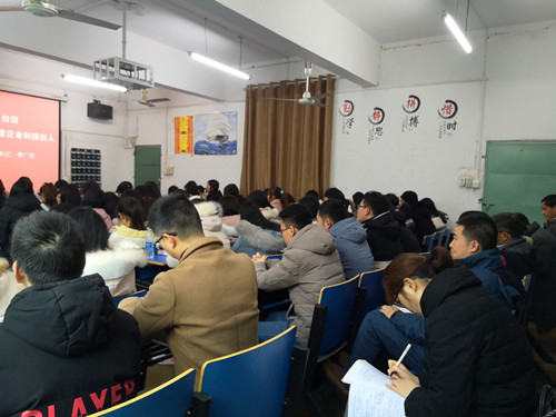为深入学习贯彻党的十九届四中全会精神,推进党的创新理论“进教材、进课堂、进头脑”,12月24日上午,校纪委书记李广欣在浔东校区思贤楼209为其联系班级护A1811/A1812的同学讲授题为《增强制度自信做社会主义事业的建设者和接班人》的思政课,护理学院党政班子成员及联系班级班主任、党支部书记一同听课。