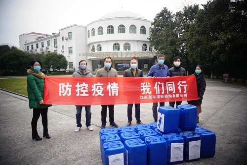 李玮董事长表示,今天我们江西惠丰招标咨询有限公司捐赠84洁净除菌液给 ,用来杀菌消毒,保障学校师生员工的健康安全。这是我们企业义不容辞的社会责任,相信在党中央的坚强领导下,我们一定能够战胜困难,打赢此次疫情阻击战。