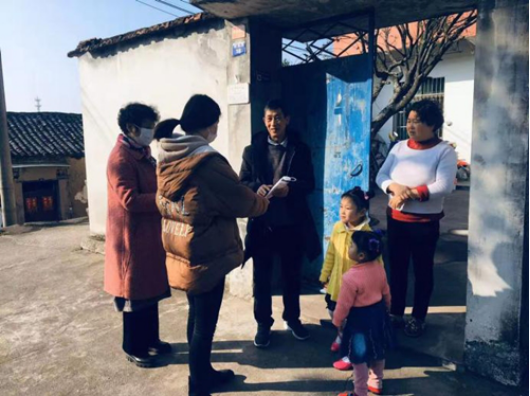 A1616学生党员杨家数在浙江省金华市金东区岭下镇村协助村委会给村民们发放口罩
