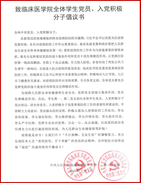 临床医学院学生党支部致全体学生党员、入党积极分子倡议书