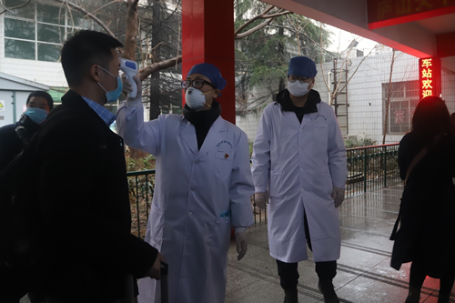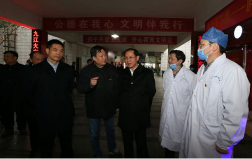 市委书记林彬杨、代市长谢来发、人大主任冯静、副书记熊永强等市领导到火车站体温筛查点看望一线“快速反应部队”