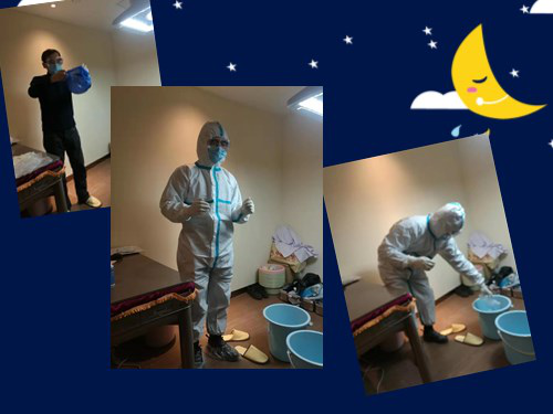 杜雪英老师是一位有过多年工作经验的院感专家,在医疗组她主要负责院感防控培训工作。穿戴防护服是一项新的、极为重要的个人安全防护培训,要求每一位医护人员在使用防护服时,必须从穿到脱,每一处细节,每一个步骤都不能出错,一旦出现错误,将面临被感染风险。1月29日,为了给医护人员彻底做好个人防护,杜雪英老师从晚上8点一直工作到凌晨4:30,确保每一个人都能够掌握到位。杜老师说:“我们是带着使命来的,有压力,也很辛苦,但有大家的支持,我们有信心!”