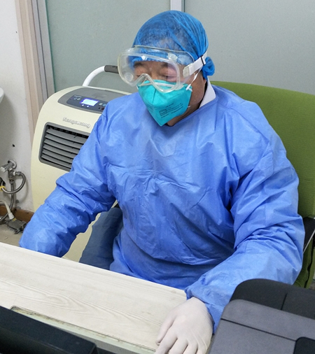 余胜辉主任坚守在隔离病区
