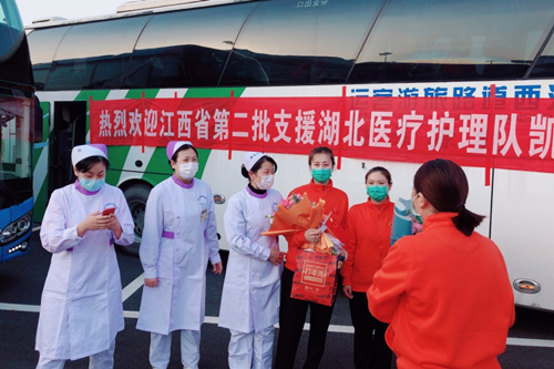 3月19日下午17点30分,满载着方舱医院的入党誓言,满载着江西人民的期盼,满载着全国先进集体光荣称号,江西援助武汉医疗护理队乘坐专机抵达昌北机场,在机场短暂的欢迎仪式后,她们将到庐山汤太宗温泉度假村进行休养。