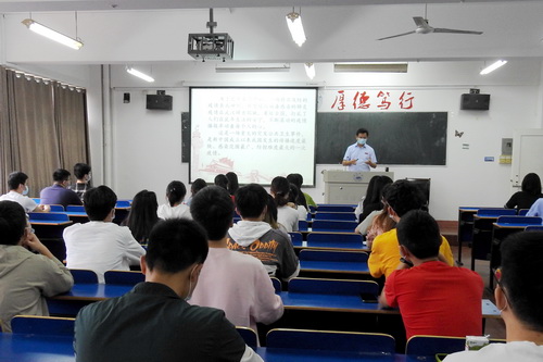 在竞知楼706教室,刘晓东校长以《在战“疫”中成长》为题,从战“疫”的动员、战“疫”的担当、战“疫”的启示三个方面为同学们上了一堂生动的思政课。他从许多生动鲜活的抗疫故事讲起,通过在抗击疫情中涌现出的大量生动的育人题材,通过中西抗“疫”模式对比,深刻诠释了中国精神与中国力量,鼓励大学生要从亲历中增强自信、在实践中贡献力量、从反思中收获成长,在宝贵的“疫情思政”大课中接受教育、挖掘经验、总结教训、弥补短板、获取力量。他指出,聚焦当下,放眼世界,没有任何一个国家能够像中国一样,以壮士断腕的勇气和决心,举全国之力积极抗“疫”,以最小的代价取得最大的胜利。