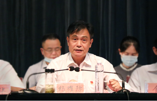 杨耀防在会上致辞,他对附属医院一年来取得的成绩表示肯定。他指出,在新冠肺炎疫情战斗中,医院职工纷纷请战,领导干部带队“逆行”,广大医护无畏奉献的事迹可歌可颂。附院全体教职工用实际行动赢得了政府、社会和群众的肯定与好评,在全市乃至在全国的疫情防控工作中做出了重要贡献。在防控疫情的同时,也狠抓医疗质量,开创学科建设新局面,完成了门诊住院综合大楼建设百年大计;医联体工作深入开展,服务基层能力和影响继续扩大;人才队伍不断发展壮大,医院规范管理提质增效;医教研齐头并进,较好地完成了全年教学、科研任务,获得学校目标考核教学先进单位;配合全市三城同创工作,成效明显。