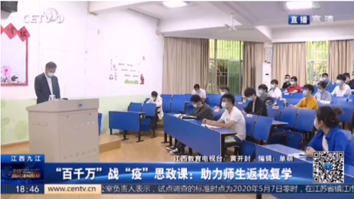 日前,中国教育电视台以《“百千万”战“疫”思政课 助力师生返校复学》为题报道了我校开展战“疫”思政教育的实况