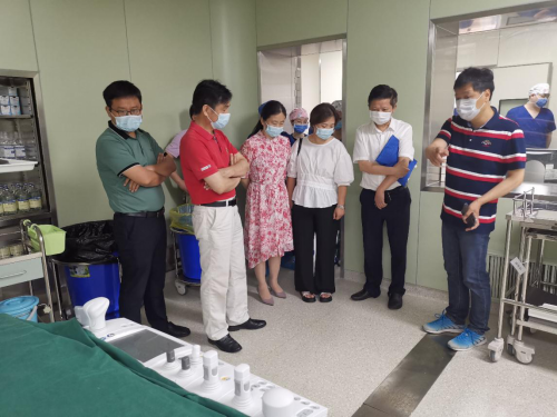 杨耀防一行先后前往南昌大学第二附属医院红角洲院区和南昌大学第一附属医院象湖院区。在院方陪同下,参观考察了两院新院区急诊中心、门诊部、检验科、供应室、手术室、静配中心、住院部病区等部门,对医院整体布局、各科室功能、医疗流程、建筑结构、装修材料等方面进行了充分的学习与了解。