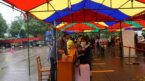 绵绵细雨阻挡不了同学们返校复学报到的热情,从各地返校的同学们或由亲友自驾、或乘坐