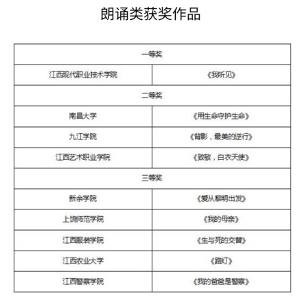 5月18日,第二届江西省高校图书馆超星杯“执手书香季 相伴花开时 致敬抗疫英雄”作品征集活动省级赛评审结果出炉。可喜的是,我校经校级赛选拔推荐的绘画作品《待到英雄归,繁华与共时》(作者:外国语学院 A1922班刘洋)和朗诵作品《背影,最美的逆行》(作者:文学与传媒学院A1851班任偲源)分别斩获绘画二等奖、朗诵二等奖两项大奖。全省共有50多所高校参赛,竞争激烈,佳作云集,整体评奖结果如下: