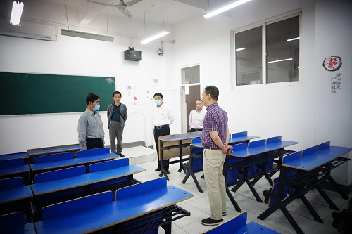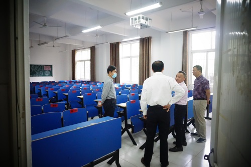 在政法学院和体育学院负责人陪同下,魏立平实地检查了教室、办公室、学生宿舍、实训场所等师生学习、生活场地。魏立平一边听取学院关于学生复学复课准备情况的汇报,一边对做好学生到校后生活、学习、活动、就餐、心理辅导、学生管理等方面工作进行了具体指导。