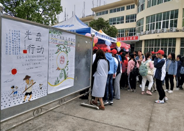 各二级学院也连续多年投入到“光盘行动”中,积极主动组织“光盘”倡导活动。学生志愿者们齐聚三食堂广场共同举办“光盘行动从我做起”海报展览宣传活动;围绕“提倡节约,反对浪费”主题,以饭碗、勺子、刀叉等日常饮食经常接触到的食具为主体进行LOGO创作;学生志愿者在各个食堂门口、用餐区以及收餐区进行引导,以语言提示、“光盘监督”、卡通互动等形式传递勤俭节约信息;在食堂的倒餐处,有学生志愿者为“光盘”的同学送上活动卡片,得到卡片的同学们都将有机会参与抽奖活动赢取奖品;举办“光盘行动”挑战赛,活动期间,同学们吃完饭之后将“光盘”图片发到微博上打卡,并呼吁更多人参与进来......