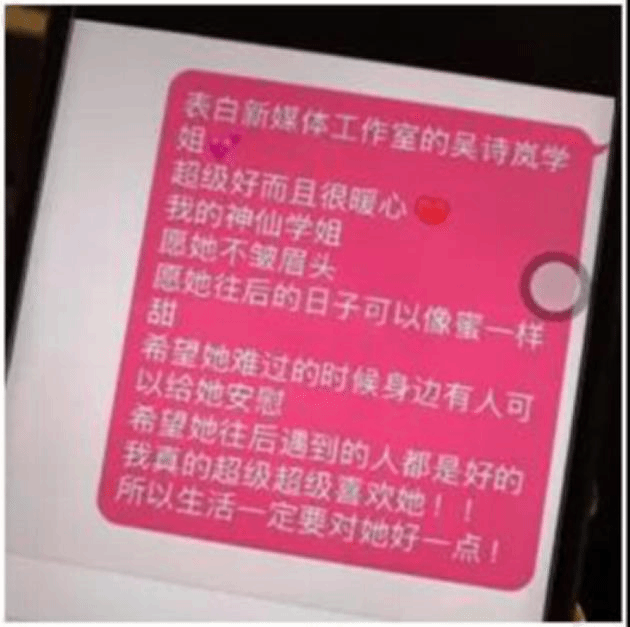 刚进入大学时,一次偶然,吴诗岚通过学长的介绍,与新媒体工作室结缘。经过一轮笔试、两轮面试,她正式成为了新媒体工作室的一名实习编辑。她被学姐学长们的负责和蓬勃思想所打动,她下定决心要在这个平台上锻炼自己、服务同学、让自己的大学生活变得更有价值和意义,与此同时她还参加了文传学院新媒体中心。