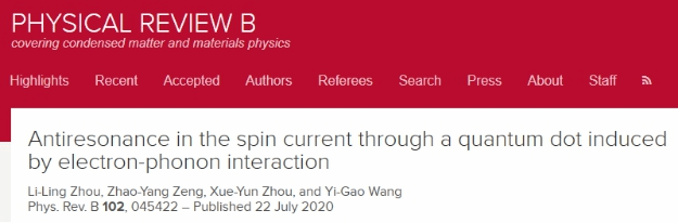 近日,我校理学院青年教师周利玲博士在纳米结构电子输运研究方面取得进展,其研究成果“Antiresonance in the spin current through a quantum dot induced by electron-phonon interaction”在国际著名学术期刊《Physical ReviewB》上发表。周利玲博士已连续两次以第一作者和通讯作者,