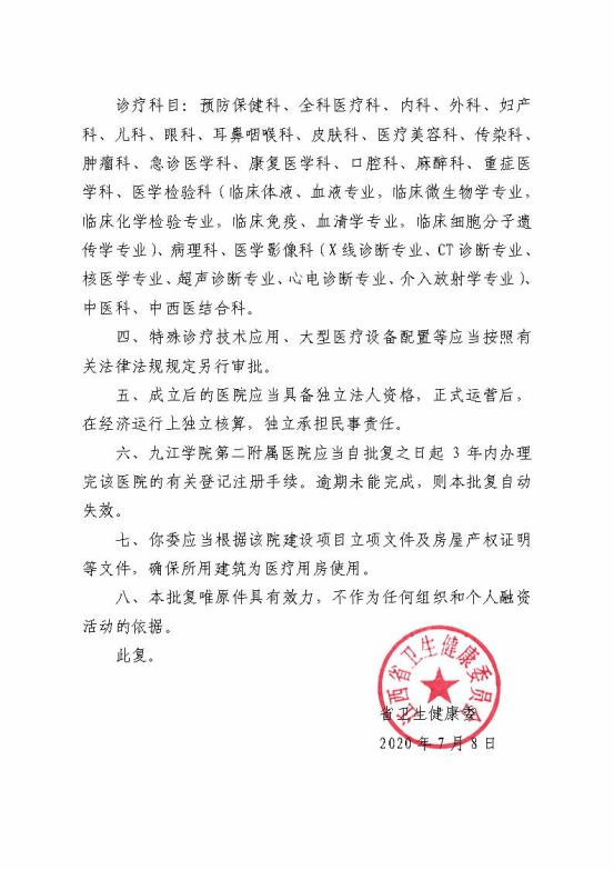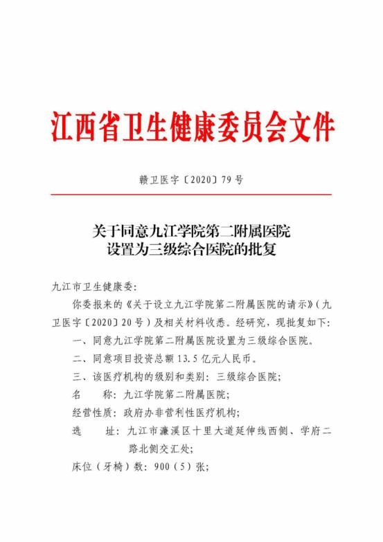 第二附属医院,2020年7月8日,获江西省卫生健康委员会发文批复同意(赣卫医字〔2020〕79 号)。