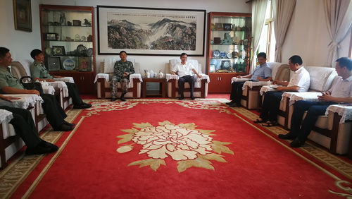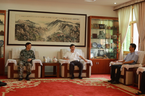 7月9日上午,九江军分区政治委员余文生、九江军分区副司令员张建军等一行六人来校调研指导大学生征兵工作。校党委书记赵伟、校长刘晓东热情接待了余文生一行,宾主双方进行了亲切的交流,学校征兵工作相关部门负责人参加了会见。