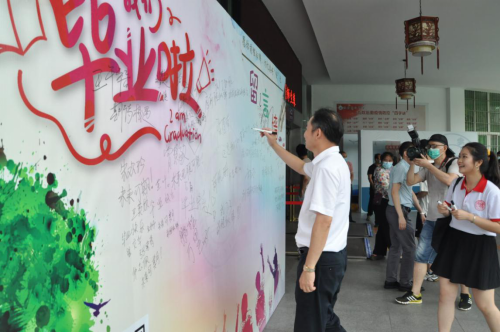 在三食堂的大门处的留言墙上,毕业生们纷纷签名并留下了对母校的感恩留言和良好祝福。赵伟书记也满含深情地写下了对毕业学子的寄语。在一幅巨大的