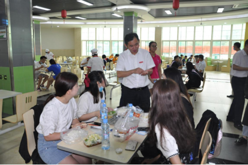 6月29日中午毕业典礼结束后,同学们纷纷涌向食堂,领取了后勤管理处精心设计的精美餐券。校党委书记赵伟、校长刘晓东等学校领导也来到了学生三食堂,深入到毕业生中间,面对面交流,或诉说惜别之情,共叙离别之意,或叮嘱毕业生在新的起点再立新功,常回家看看,深切表达了对毕业生殷切的期望、热情的鼓励和美好的祝福,让毕业生们暖心、暖胃,再出发。