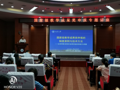 贺宏斌结合典型案例,从高等教育教学成果奖申报的理论层面、政策层面和技术层面,围绕教学成果奖项目选题、高水平团队组建、项目成果特色凝练、成果推广及鉴定、申报材料撰写等方面作了详尽讲解。他还根据历届国家级教学成果奖获奖项目数据分析和当前高等教育教学改革热点,对我校教学成果奖培育进行了具有针对性和可操作性的指导。