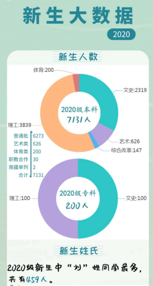 即将迎来来自全国各地的7331名新生(本科生7131人和专科生200人)。大数据显示,我校本科新生男女比例基本持平。新生中,普通类考生6273人,艺术类626人,体育类200人,职教合作30人,南疆单列2人。据招生与就业处工作人员介绍,加上前期已入校报到的1799名专升本学生,我校今年共录取学生9130人。