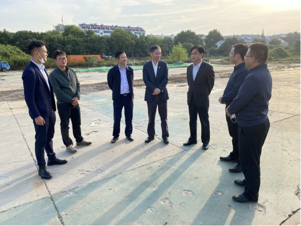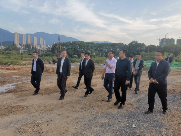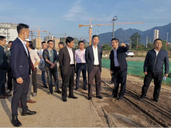 在项目建设指挥部指挥长张南华,副指挥长曹钟安、李晓华及指挥部其他工作人员的陪同下,赵伟、杨耀防来到项目建设工地,了解项目进展,察看工作现状。
