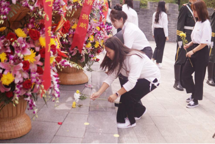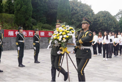 伴随着庄严的《献花曲》,国旗班礼兵将花篮缓缓抬上烈士纪念墙前。学生代表高可仰作了纪念碑下的演讲,全体参加烈士公祭仪式人员向为国捐躯的先烈三鞠躬。