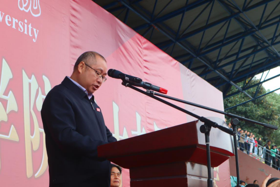 陈春生致闭幕词,他代表学校和运动会组委会,向取得优异成绩的代表队和运动员表示热烈的祝贺,向为本次运动会付出辛勤劳动的全体工作人员、全体运动员、裁判员,以及关心和支持本次运动会的所有单位和师生员工表示衷心的感谢。陈春生指出本届运动会充分体现了我校师生团结奋进、顽强拼搏的精神风貌。他强调体育强则中国强;青年强则中国强,学校将响应习近平总书记在今年9月份召开的教育文化卫生体育领域专家代表座谈会上的要求,深入贯彻落实全国教育大会和中央《关于全面加强和改进新时代学校体育工作的意见》精神,努力培育德智体美劳全面发展的社会主义建设者和接班人。他要求全体师生将敢于挑战、永不放弃的体育精神带到学习和工作中去,为建设“特色鲜明区域优先的综合性应用型大学”贡献力量。