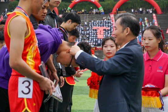 校长刘晓东为公体组女子4×100接力赛获奖同学颁奖