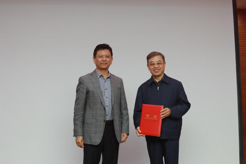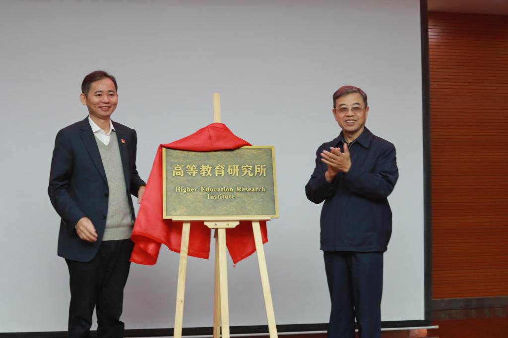 在热烈的掌声中,赵伟和王立生共同为我校高等教育研究所揭牌。
