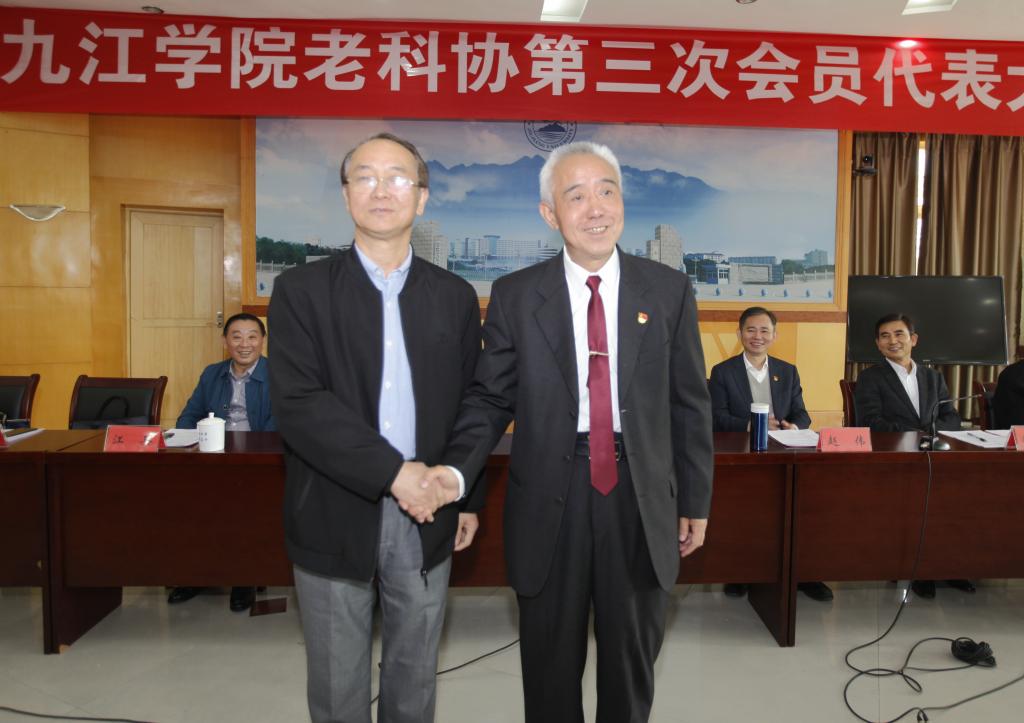 老科协第三次会员代表大会在行政楼四号会议室召开。九江市老科协会长华金国、副会长江兵,
