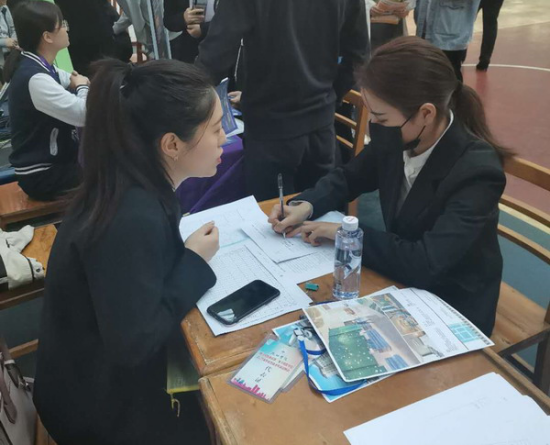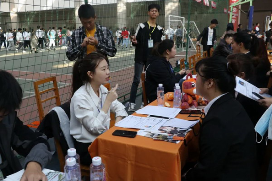 招聘会持续到下午1:00,首轮面试基本结束,复试工作则转至竞知楼、竞秀楼各教室进行。据统计,有近1000多人次和招聘单位达成了就业意向。