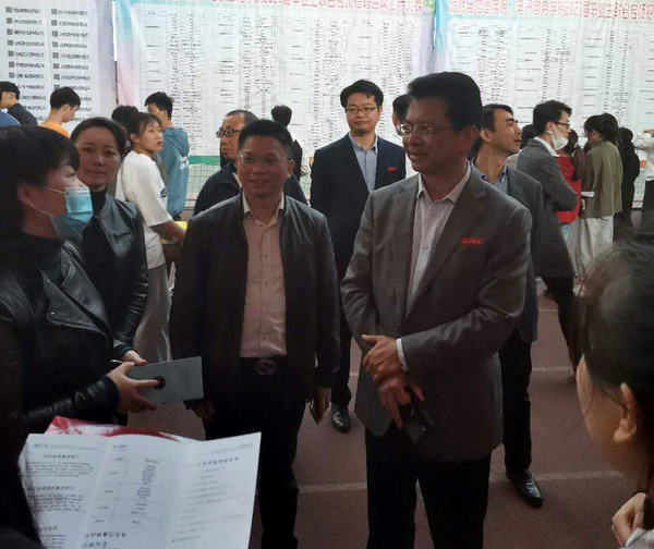 在招聘会现场,校领导还与用人单位代表、毕业生代表进行了亲切交谈,和返校招聘的校友进行了逐一交流。