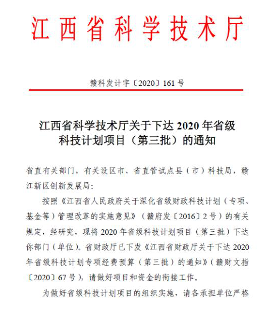 近日,根据江西省科技厅赣科发计字(2020)161号文件,依托我校化学化工学院建设的江西省生态化工工程技术研究中心在2020年验收评估中被评为省级优秀平台,获得省科技厅进一步资助。