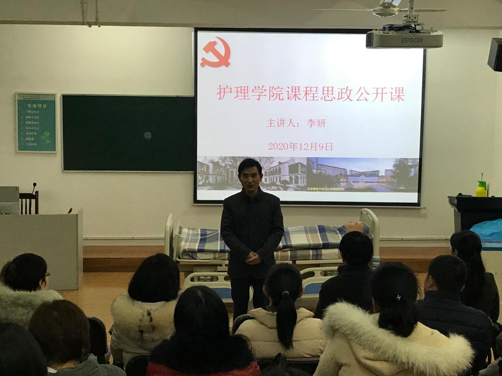 12月9日下午,护理学院在浔东校区望杉楼204教室举行课程思政公开课活动,校党委副书记魏立平亲临指导,马克思主义学院夏仕教授、护理学院全体教职工和学生代表参加听课。