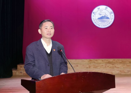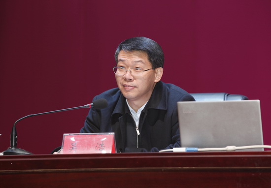 12月17日下午,根据省委统一安排,联系 的省领导副省长吴浩来校作报告,为学校师生上了一堂生动的思政课。省政府副秘书长刘晓艺、省委教育工委宣传部牵头负责人魏建克、省政府办公厅秘书四处副处长王江南、省政府办公厅喻建华参加报告会。报告会在 大礼堂举行。学校党委书记赵伟主持报告会。学校班子成员与师生代表600余人一同聆听了吴浩副省长的报告。