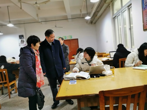 赵伟走进学生自修室,与考研学生亲切交流,叮嘱同学们要劳逸结合,发奋读书,考出理想的成绩,成为对社会有用的人。