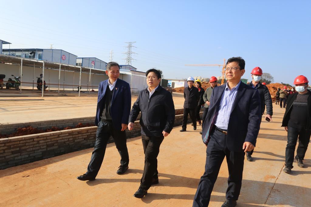 郭杰忠厅长一行实地考察了学校教育资源整合建设项目和高层次人才公寓建设项目建设工地。