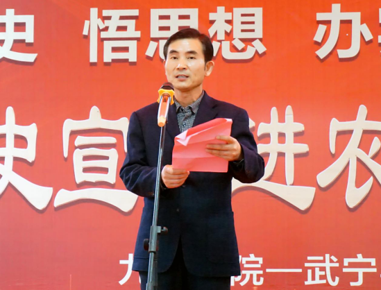 武宁县委常委、宣传部部长刘斌在致辞中表达了对学校帮扶武宁县官莲乡东山村的感谢,他要求乡村两级在学校的帮扶下,继续在乡村振兴征途上奋发有为、奋勇争先、作示范、树标杆,助推东山村成为全国乡村振兴典范。